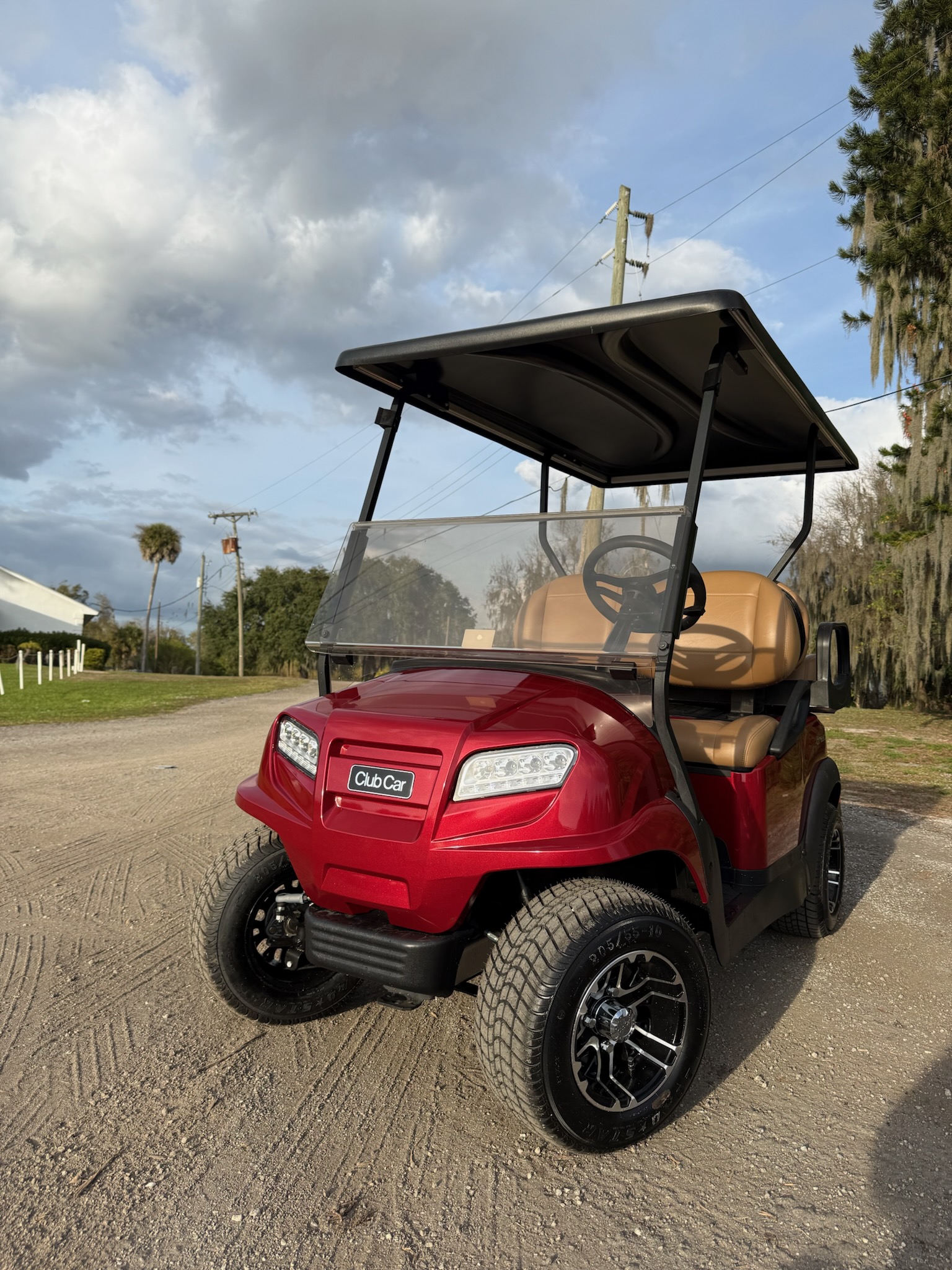 2026 Club Car, Onward, Gas, 4-passenger, non-lifted, Custom Candy Apple Red body, Camello premium seats, Black extended roof, Tinted windshield, LED headlights/taillights, Turn signal horn. Asking 13,495 + Tax, Contact us about delivery options and financing options.