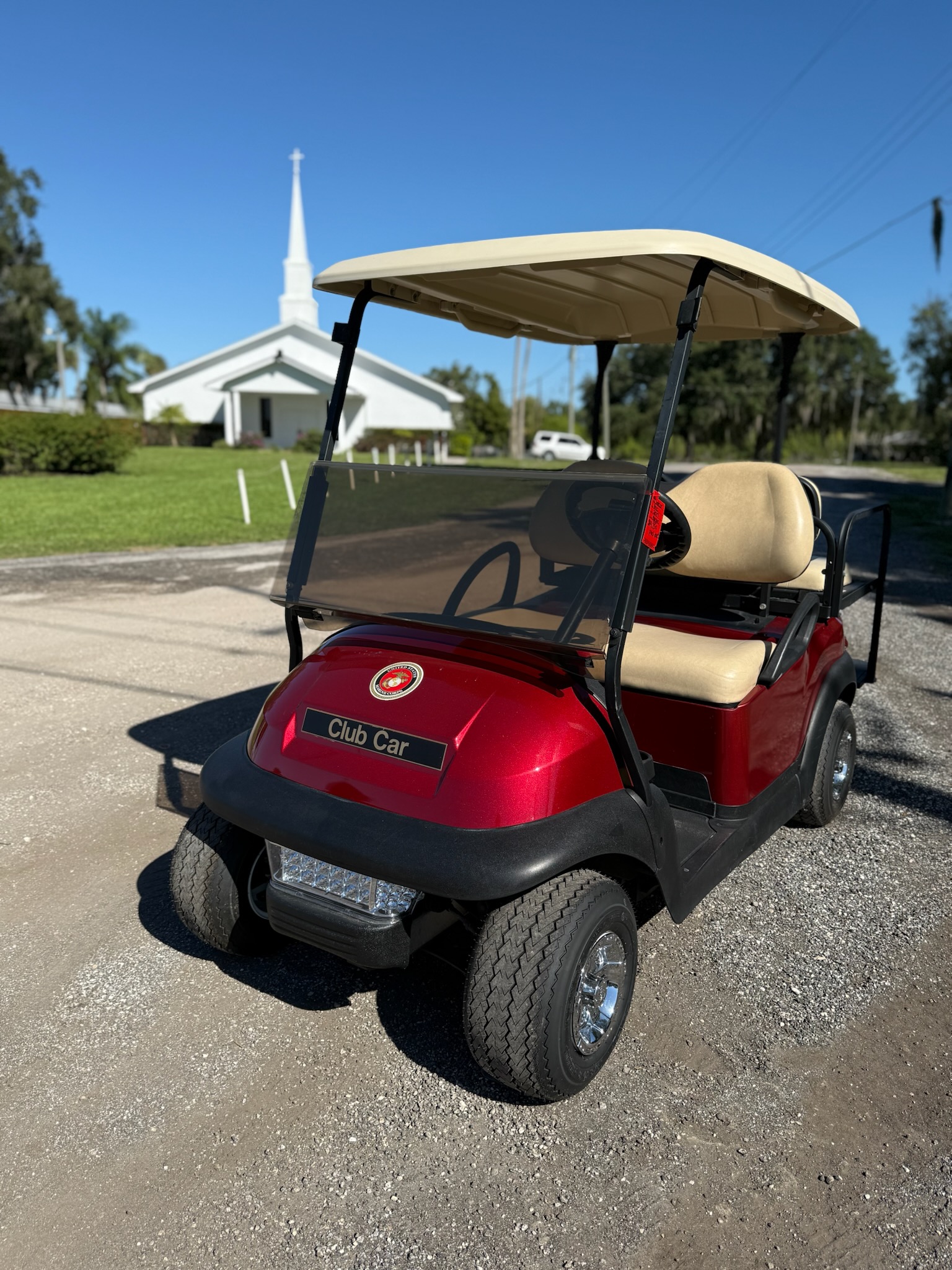 2017 Club Car, Precedent, Electric 48v,  4-passenger, Non-lifted, Red body, Beige seats, Tinted windshield. Asking $4,750 + Tax, Free local delivery.